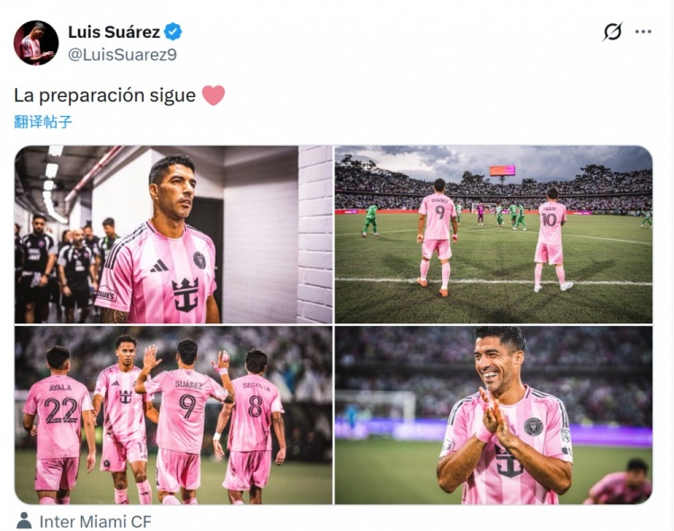 苏亚雷斯社媒晒出比赛照片,并写道:“备战工作继续进行。”